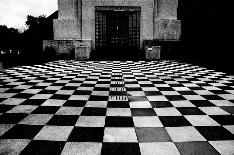 the receding pattern with the high contrast is superb. I’m intrigued by the building that the chequered floor leads to.