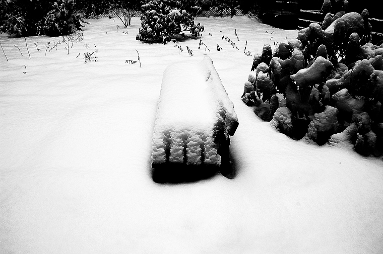 10. Un lieu oublié. Un lieu redécouvert. Un lieu apprivoisé par le photographe… La neige du banc est très belle.