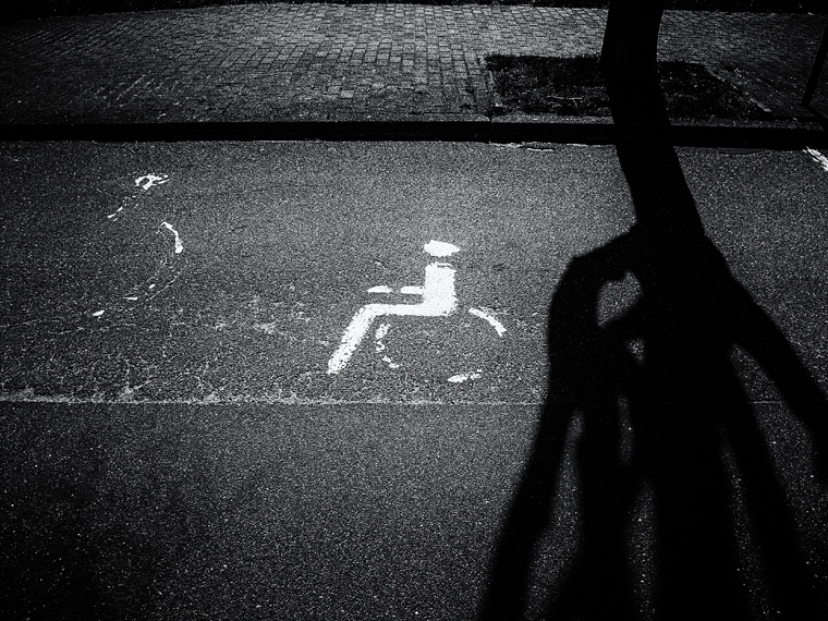 i like the symbolism of that huge dark shadow behind the figure of the wheelchair.. nicely captured.. :)