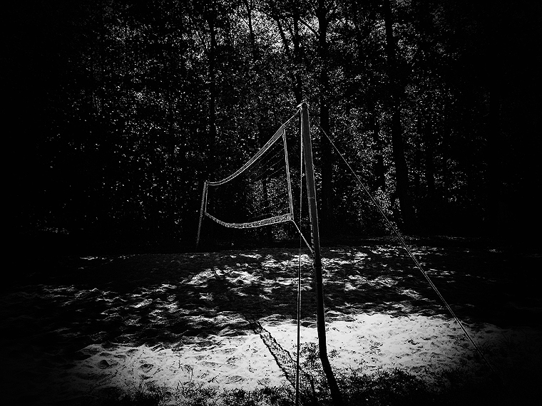 Kein Ball, kein Aufschlag, kein Smash, kein Lob, keine Finte, kein Block, doch auch ohne Aktivitäten der fehlenden Spieler ein Bild voller Reize, den das Licht zaubert eine wunderbare Stimmung und das Auge wird unwillkürlich gefangen und befangen vom und im Netz.