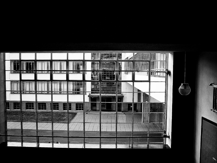 Wunderbar, wie hier zwischen uns und dem Motiv eine Membran gebracht wird: Wir stehen im Dunkeln eines Innenraums und sehen durch ein quadratisch gerastertes Fenster auf die prominente Bauhaus-Architektur in Dessau, die genauso geometrisch streng, klar und puristisch erscheint wie die Komposition des Fotos selbst. Der Blick durch ein solcherart unterteiltes Fenster atomisiert und vervielfacht das Motiv zugleich, denn in jedem kleinen Glasgeviert ist ein anderer Teil des Ganzen zu sehen, fast wie bei einem Puzzle. Das Motiv behält aber seine optische Logik, da das Raster des Fensters dem Bauprinzip des Moduls entspricht, wie es am Bauhaus praktiziert wurde. Insofern zeigt das Foto nicht nur die Architektur, sondern auch die formalen Mittel, die ihre Struktur bestimmen. Gruß, Uwe