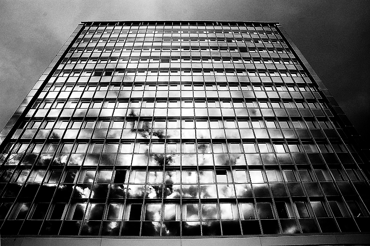 The building stole the sky and it is prisoner in its windows. Great picture again! Love it!