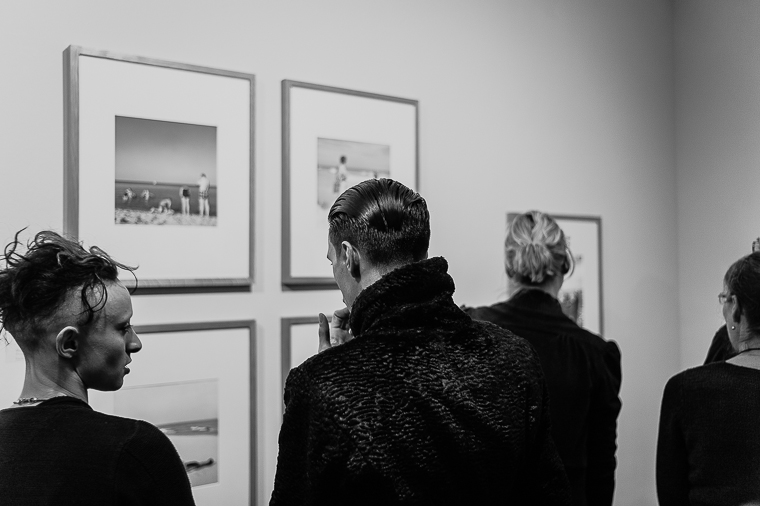Wenn sich das Vernissage-Publikum tatsächlich mit den Bildern an der Wand beschäftigt, und nicht nur mit sich selbst, hat der Aussteller die richtigen Bilder ausgewählt. Hier scheint es so zu sein;)